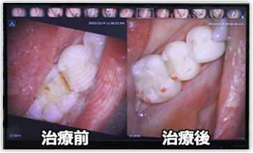 歯科用顕微鏡を使用することで、治療中の全てを静止画と動画で記録することができます。これにより、患者さまへの説明時には、どんな治療を行ったのか見て分かる説明が可能となりました。